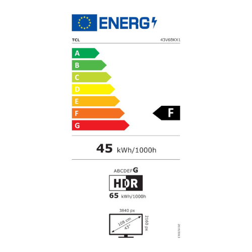 | Screen size diagonally | 43'' |